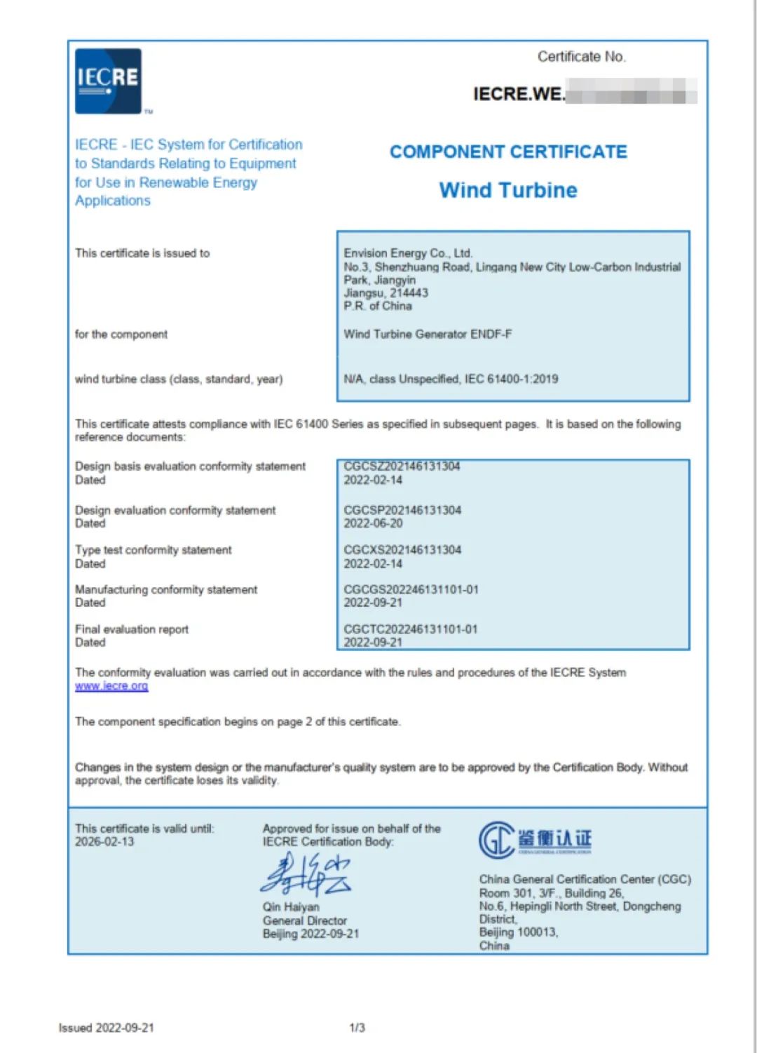 遠景自研發電機率先引入了高速直冷、950V/1140V三電平、海上雙饋等創新技術。基于供應鏈、質量、制造管理上的豐富經驗和信息化優勢,遠景深度介入自研發電機生產的各個關鍵環節,引入BIQ系統嚴格管控關鍵過程參數,確保設計生產一致性。所有遠景自研發電機均獲得第三方機構部件認證,在國內率先獲得更高標準的IECRE零部件認證,還依托歐盟及地方合規認證,隨遠景風機出口應用到法國等多個海外項目。