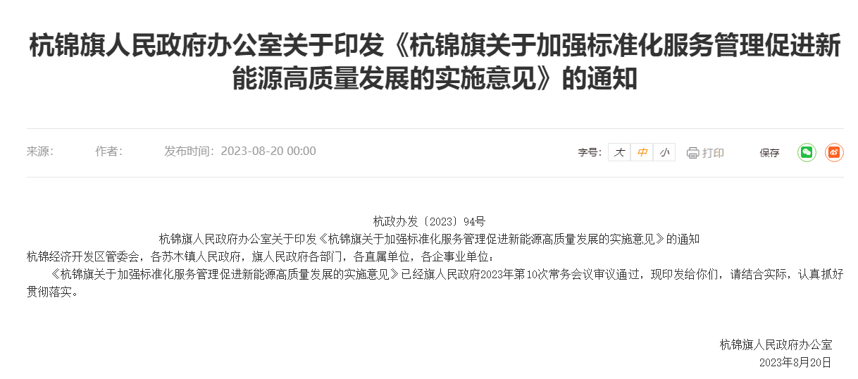 杭錦旗關(guān)于加強(qiáng)標(biāo)準(zhǔn)化服務(wù)管理促進(jìn)新能源高質(zhì)量發(fā)展的實(shí)施意見